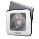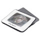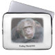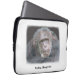 Este estojo de laptop apresenta uma fotografia contemplativa de um chimpanzé na capa.