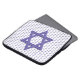 Um design simples, mas elegante, com uma estrela roxa de David. Há um padrão contínuo e repetido de estrelas pequenas e um grande plano sobre Magen David. Qualquer um deles pode ser facilmente excluído usando o recurso personalizar ou personalizar no Zazzle. Você também pode adicionar qualquer cor de fundo que o atraa.