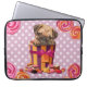 Filhote de cachorro bonito do pug no recipiente dos doces, com os swirlpops e o fundo roxo das bolinhas projetados pelo artista Maryline Cazenave.