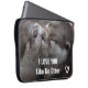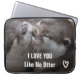 Bolsa de laptop com uma fotografia fofa e romântica com duas lontras apaixonadas. Uma lontra está lambendo e beijando o pequeno rosto da outra lontra, os olhos fechados parecem agradáveis. O texto diz "Eu te amo como sem lontra" com um coração de rabisco bonito.