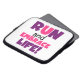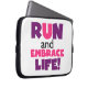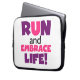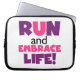Se você gosta de correr, correr 5Ks, 10Ks, meia maratona, ou maratonas, você vai adorar este design de texto colorido em roxo e rosa que lê Run and Embrace Life! Corra e Abraça camisetas, canecas, bolsas, cartões, autocolantes, correntes-chave, mousépias, capas de iphone, ímãs e muito mais!