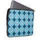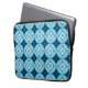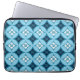 Tradicional Japonês Shippo, ou "sete tesouros" modelou Bolsa de laptop de círculos de encravamento com um motivo de flor central - flores azuis e brancas com fundo de indigo e azul-céu