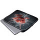 A imagem mostra um papoila vermelho solteiro no cheio florado, definido em um fundo preto estrelado. A flor é o foco central, com suas delicadas pétalas espalhadas e seu centro escuro sobre cheio. O aspecto mais impressionante da imagem é a água que se espalha ao redor da papoila. Parece que a flor está no coração de uma explosão, com gotas de água congeladas no ar do médio, criando um efeito dinâmico e quase eéreo. O contraste entre o vermelho vibrante da papoila e o fundo escuro, junto com o foco nítido na flor e na água, faz uma fotografia cativante e artística.
