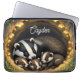 Uma manga de tablet personalizada e bonita, com uma ilustração ai de um texugo de mamã e seus bebês, todos dormindo em seu túnel subterrâneo, chamaram de sett.