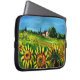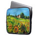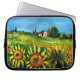 Paisagem da Toscana, cor, vibrante e expressiva beleza da flora e campos de Verão italianos em laranja amarelo vivo, verde, castanho, cor azul, lindas flores, ciprestes e oliveiras, antiga casa de fazenda rustica sob o céu azul.Pintura acrílica em canvas.