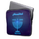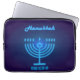Feliz Hanukkah Belo Design de Férias Judaicas com as letras hebraicas. Antecedentes judeus do Hanukkah com símbolos tradicionais do Chanukah - Dourado Menorah, Hanukkiah Candelabrum e velas, sonhos de madeira (rodando no topo), rosquinhas, estrela de David e padrão de papel de parede luminoso brilhante. Decoração do Festival Chanucá. Jerusalém, Israel. Eletrônicos > Tablet & Laptop Capas > Laptop Capas > Bolsas de laptop, bela design com texto modelo personalize-os adicionando texto de desejos, nome e muito mais. Perfeito para a Ideia do Presente