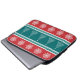 Ilustração feliz de Natal com árvore de Natal e decoração de flocos de neve em fundo vermelho, branco, azul e turquesa listrado