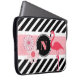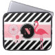 Um cobrir/caso de laptop bonito que qualquer entusiasta do Flamingo amará. Listras preto e branco, velhas e modernas, com sotaques cor-de-rosa, flores e Flamingo. Adicionar monograma para personalização.