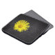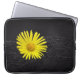 Esta bolsa de laptop tem uma flor amarela nela.