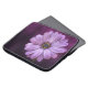 Esta design apresenta uma bela imagem de um conjunto de flores roxas contra um fundo mais escuro.
