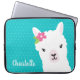 Esta bolsa de laptop de lhama bonita faz um presente de excelente para uma menina. Design apresenta uma ilustração de lama branca, flor rosa e fundo de bolinhas verde. Personalize facilmente este nome personalizado!