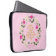 Uma bolsa de laptop floral roxa rosa com flores com folhas verdes e em folha de ouro falso, a citação "Dúvida de que as estrelas são fogo, Dúvida de que o sol se move, Dúvida de que a verdade é mentirosa, mas nunca duvido que eu amo." do Hamlet de William Shakespeare. *Observe que a Marca d'água do Zazzle que aparece na visualização de zoom não aparecerá no produto impresso final. © Bookish e Maravilha