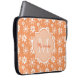 Adicione uma impressão chique e feminino a seu estilo pessoal com este teste padrão de flor bonito 15" da margarida alaranjada e branca a bolsa de laptop com um monograma moldado na moda. Personalize este design floral feminino adicionando sua inicial conhecida e monogrammed.