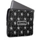 Esta bolsa de laptop tem um padrão divertido e pode ser personalizada mudando o nome. Este padrão de abstrato consiste em flores de linhagem branca sobre fundo preto que a faz parecer moderna e elegante.