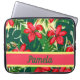 Flores tropicais vermelhas e folhas verdes, adicione seu nome.