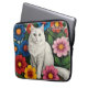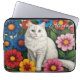 Capa Para Notebook Fluffy White Cat and Folk Art Flowers
