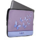 O Flutter da Borboleta em Azul - Nome e Bolsa de laptop inicial faz parte da Coleção de Acessórios de Azul - Banho, Praia, Yoga e Viagem. A bolsa de laptop apresenta um fundo violeta, uma flauta de nove borboletas azuis de rabisco no estilo de rabisco e um nome e inicial. Para torná-lo seu, adicione seu nome e inicial. Além disso, seguindo o link "Editar com Ferramenta de Design", você poderá alterar todas as cores. Isso garantirá que você crie um presente para si mesmo ou um amigo que o reflita. Para obter informações sobre design personalizado ou assistência com personalização, entre em contato conosco em info@KBMD3signs.com.