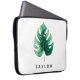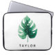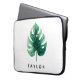 Design de bolsa de laptop moderna com pintura manual de cor aquosa, folha de monstera verde, em fundo branco. O texto é personalizável.