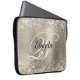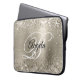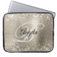 Brilhante prata brilhante com brilho de platina com faíscas e imagem digital de folha metálica esfregada em falso no tamanho de bolsa de laptop grande. O monograma de caligrafia branca e rico no centro pode ser personalizado. Para este estilo de fonte decorativo, você pode mover sua inicial para o centro, se necessário. Todos os elementos metálicos, brilhosos, brilhantes e brilhantes desta design moderna e feminina estão criados com efeitos gráficos digitais que a impressão chançam como uma foto. Um bom presente de volta à escola para a sua filha.