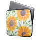 Esta bolsa de laptop única apresenta um girassol de cor d'água e um padrão foliar em tons de amarelo e verde. Porque nós criamos a nossa trabalho de arte, você não encontrará esta imagem exata de outros designers. Original Watercolor © Michele Davies.