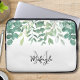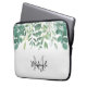 Esta bolsa de laptop botânica é decorada com aquarela eucalipto e outra folhagem em tons de verde. Facilmente personalizável com seu nome ou monograma. Original Watercolor © Michele Davies.