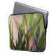 O design retrô desta Bolsa de laptop de 13 polegadas foi criado de uma fotografia original de ZoeSPEAK de folhas longas e finas verdes à luz do sol da tarde, lançando sombras azuis na parede do stucco atrás. As plantas são petúnias mexicanas, com caules avermelhados. O humor é sonolento na tarde de verão de tempos anteriores.