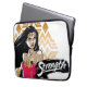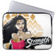 Veja a Mulher Maravilha em frente ao padrão tribal do logotipo com "Força" escrita sobre um traço de pincel pintado.