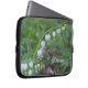 Fotografia de delicadas flores brancas do coração sangrando com fundo verde suave. Personalize esta bolsa de laptop com seu nome, faz um presente perfeito para qualquer amante da natureza.