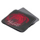 Foto macro de uma bela rosa vermelha sobre fundo preto com efeito granulado vintage com monograma personalizável.