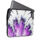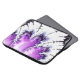 Este produto apresenta um gradiente abstrato fractal em roxo, branco e preto.