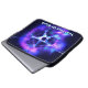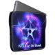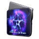 Uma imagem fractal roxa e azul de uma estrela de cinco pontas numa espiral de cor envolvente; tudo sobre fundo escuro. Adicione seu próprio texto.