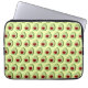 Cartoon estilo abacate fofo e fundo cardíaco vermelho. Bolsas de laptop decorativas. Ideia de presente para amantes do abacate.