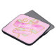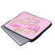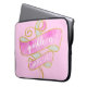 Bolsa de laptop rosa brilhante e bonito com a citação inspiradora "Sparkle on, Querido" em um roteiro branco elegante, com um fundo de faixa de fita rosa e um contorno de brilho dourado.