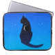 Bolsa de laptop em uma silhueta de um elegante gato sentado apadrinhado com estrelas e uma lua crescente sobre um fundo de céu estrelado