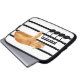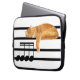 Tabuleiro laranja comprido por gatinho snoozes nas linhas de funcionarios de uma música particionada e bolsa de laptop de amantes de gatos