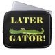 Um jacaré verde giro com texto amarelo que lê Mais Tarde Gator! Mais tarde, T-shirts do Gator, bolsas, canecas, ímanes, correntes-chave, guardas, cartões, autocolantes, botões, travesseiros e muito mais.