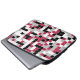 Esta bolsa de laptop colorida apresenta um padrão geométrico multicolorido na Viva Magenta, preto, cinza e branco. Os quadrados são coloridos em ordem aleatória e você pode editar as cores na ferramenta Design.