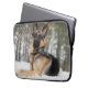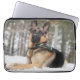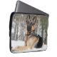 German shepherd posando na neve vestindo uma bandana colorida camoflaug.