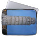 This captivating photograph showcases the iconic Leaning Tower of Pisa standing elegantly against a deep blue twilight sky in Pisa. The historic marble tower, famous for its unmistakable tilt, is beautifully illuminated, highlighting its intricate Romanesque arches and layered columns.
