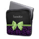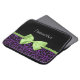 Uma bolsa de laptop roxa e preta na moda do impressão do girafa 13 polegadas com um arco verde bonito da fita envolvido como um presente. Personalize adicionando seu nome a este impressão animal das mulheres à moda. Aperfeiçoe para uma menina feminino adolescente do fashionista!