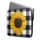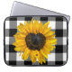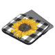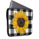 Girassol amarelo com centro em forma de coração e joaninha na xadrez de búfalo preto e branco.