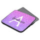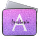 Glitter roxo feminino e glam ombre brilha o nome do monograma e a capa inicial do computador. Personalize com seu nome personalizado em preto e seu monograma inicial em branco. Você pode alterar a cor do texto, o estilo e o tamanho da fonte usando a opção personalizar.