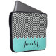 Capa Para Notebook GIRLY HOT TEAL BLUE black White Chevron Personaliz