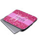 O brilho e a cintilação rosada cintilante brilha o nome do monograma branco e a bolsa de laptop inicial. Seu nome personalizado e monograma são escritos em um elegante roteiro escrito à mão com um fundo rosa. Você pode alterar a cor do texto, o estilo e o tamanho da fonte usando a opção personalizar. Um aniversário perfeito ou presente de Natal!