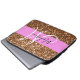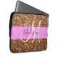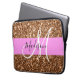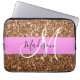 A brilho e a cintilação rosada e bronze cintilante brilha o nome do monograma branco e a bolsa de laptop inicial. Seu nome personalizado e monograma são escritos em um elegante roteiro escrito à mão com um fundo rosa. Você pode alterar a cor do texto, o estilo e o tamanho da fonte usando a opção personalizar. Um aniversário perfeito ou presente de Natal!