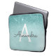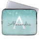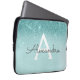 Capa Para Notebook Glam Teal Aqua Blue Glitter e Sparkle Monograma
