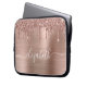 Bolsa de laptop personalizada com cinzas cônicas e cônicas, com brilho de falso ouro rosa a gotejar por um fundo de folha metálica falsa em ouro rosa. Monograma com seu nome em um roteiro branco de tendências na moda com baloiços.
