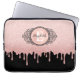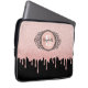 Um brilho de ouro preto e rosa com cinza pinga bolsa de laptop com um elegante monograma de rolagem. Personalize-o para si mesmo ou para um presente! Projetado para você pelo Blackberry Boulevard.