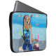Esta bolsa de laptop caracteriza um golden retriever vestida como um snorkeler no oceano.