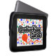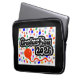 A Black Color Laptop Sleeve, With a Drawing/Design, of the Word = Graduation 2026= in Black and White color, With a Colorful Confetti, and a Red Balloon, = (Drawing/Design by P.J.M.). =On it, With A White/black